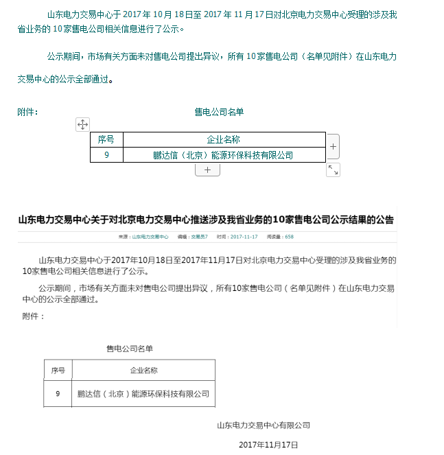 山东电力交易中心关于对北京电力交易中心推送涉及我省业务的10家售电公司公示结果的公告